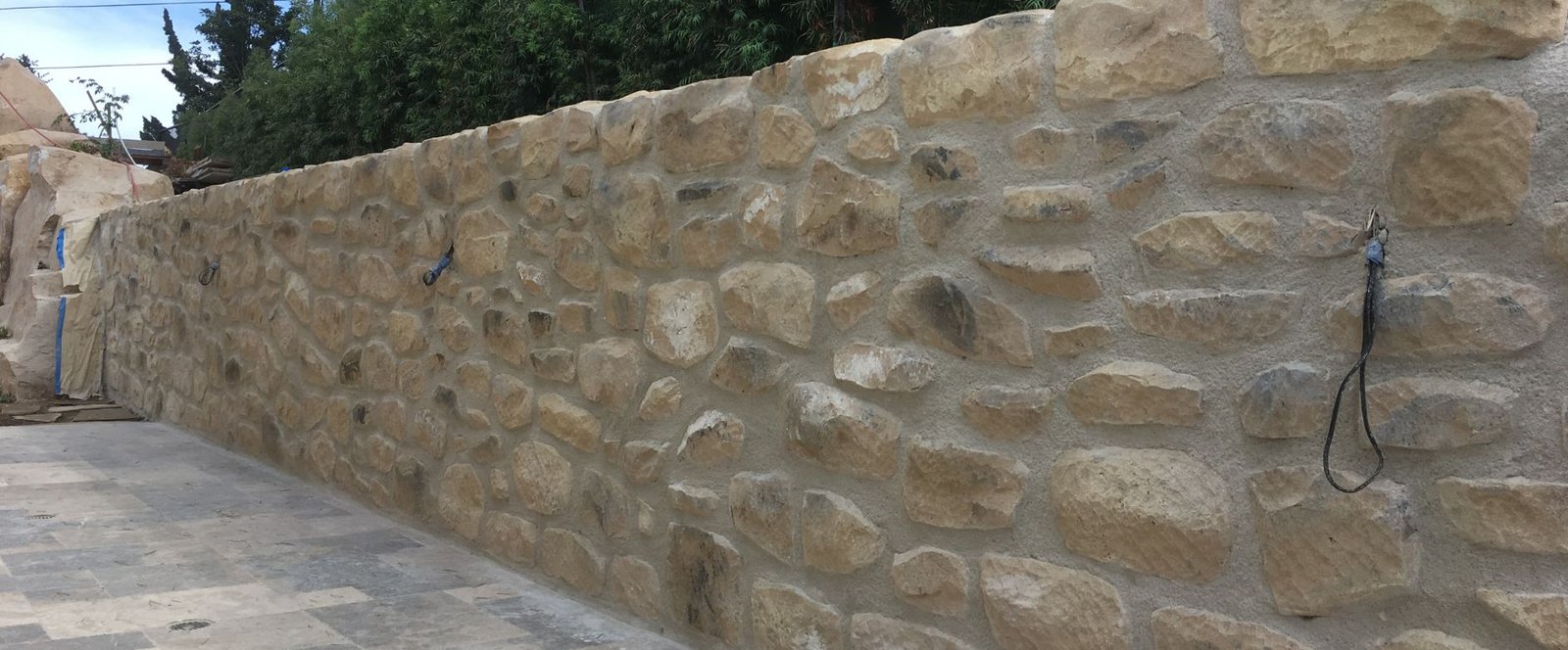 Para la mayoría de trabajos de tematización vertical se utiliza el mortero ESTonetex-Expanded, ya que es un mortero tixotrópico especialmente diseñado para poder moldear y dar grandes grosores sin que el material se descuelgue o pierda propiedades.